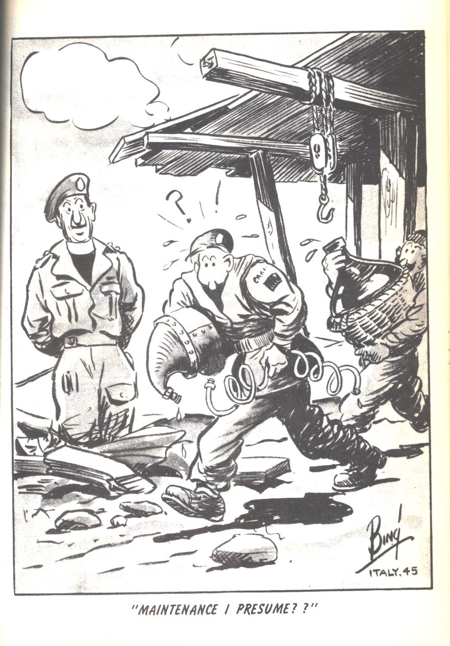 I was browsing through a collection of Herbie cartoons in a now out-of-print collection (Thomas Nelson, 1959, though I think reprinted in 2008) and found this depiction of a Canadian army padre. It’s a clever piece. The padre’s question – “Maintenance, I presume?” – could be sheer cluelessness (something we are famous for) or he could be gently letting the would-be distillers know that he is turning a blind eye to their still. Which do you think it is?