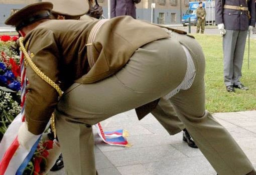 It’s Friday and with Remembrance Day now safely behind us for another year, I hope it’s now not too irreverent to post this photo, courtesy of my brother the Mad Colonel, who seems to have a line on shots of major uniform malfunctions.