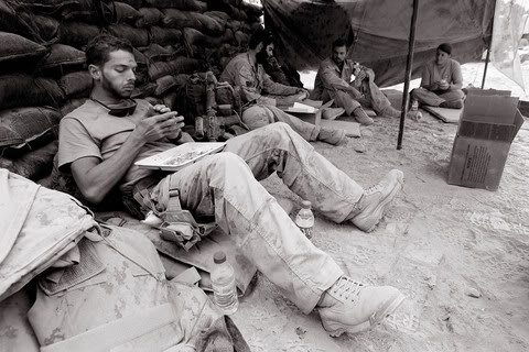 Photo taken Nov 8, 2006, by John D. McHugh Caption from his website: “Soldiers from 8 Platoon, Charles Company, The Royal Canadian Regiment, enjoy fresh food at their fortified position in a volatile area in Panjwayi district, Kandahar province. It was their first fresh food since 19 October.”