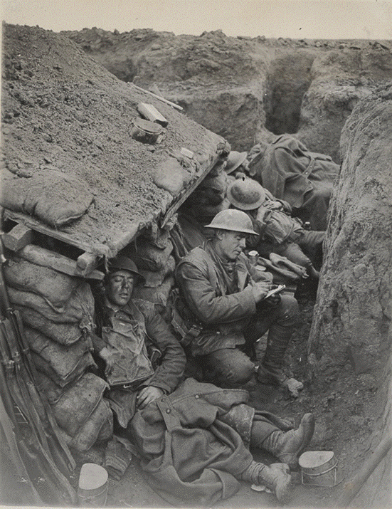 Can’t remember where I found the photo above of Canadian troops in a trench in the First World War, probably from the Canadian War Museum website.