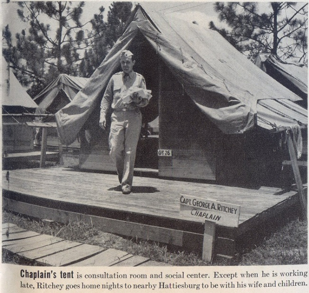 I have a soft spot for this photo found on the site, as the reference to Hattiesburg in the caption gives it away as being taken in Camp Shelby, Mississippi. My late wife Kay grew up in Hattiesburg and worked in the PX there as a teenager. Not sure how that’s relevant to anything, but there you go.